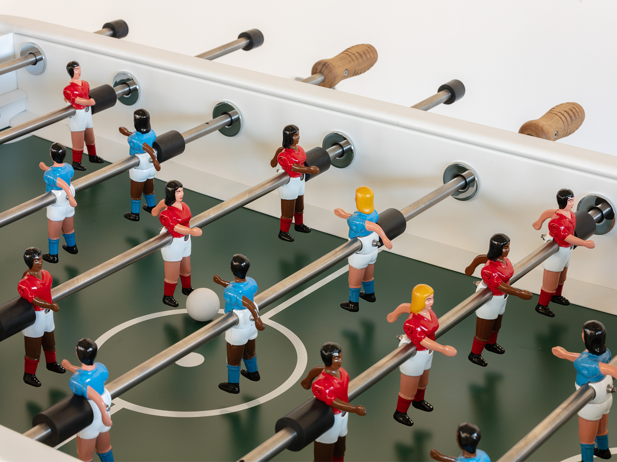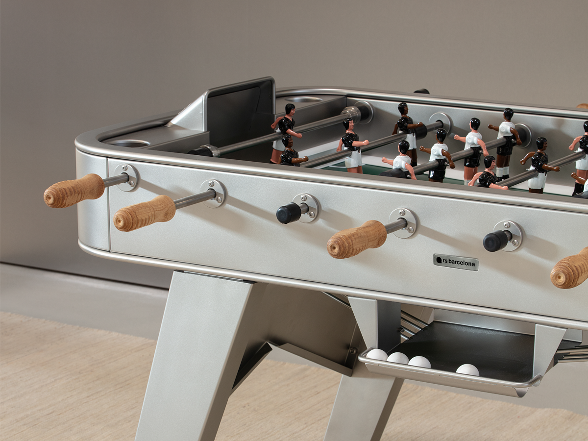 Το RS2 σχεδιάστηκε όχι μόνο για το παραδοσιακό playroom, αλλά και για το σύγχρονο επαγγελματικο περιβάλλον. Δημιουργήθηκε για να δένει αρμονικά με την περιβάλλουσα επίπλωση, κλέβοντας τις εντυπώσεις. Είναι ένα ποδοσφαιράκι που ξεχωρίζει με τον βιομηχανικό του χαρακτήρα, τις καθαρές γραμμές, τα κομψά χρώματα και τις προσεγμένες λεπτομέρειες που αντέχουν στον χρόνο.