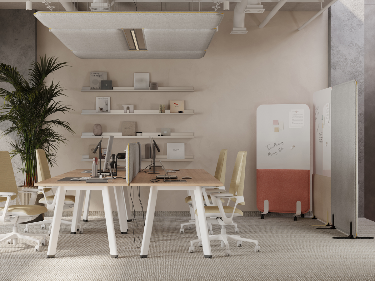 The freestanding acoustic panel with magnetic white board paint is the perfect solution for offices, combiningfunctionality with excellent acoustics. It effectively dampens noise while providing a convenient surface forwriting and attaching documents, facilitating workflow organization and team collaboration. Its sleek designand flexible placement make it an essential element for any office space.Works best in: Open Space, Call Center, Casual Collaboration Space