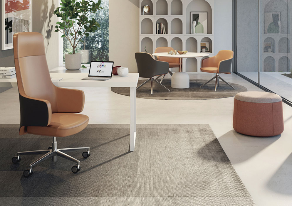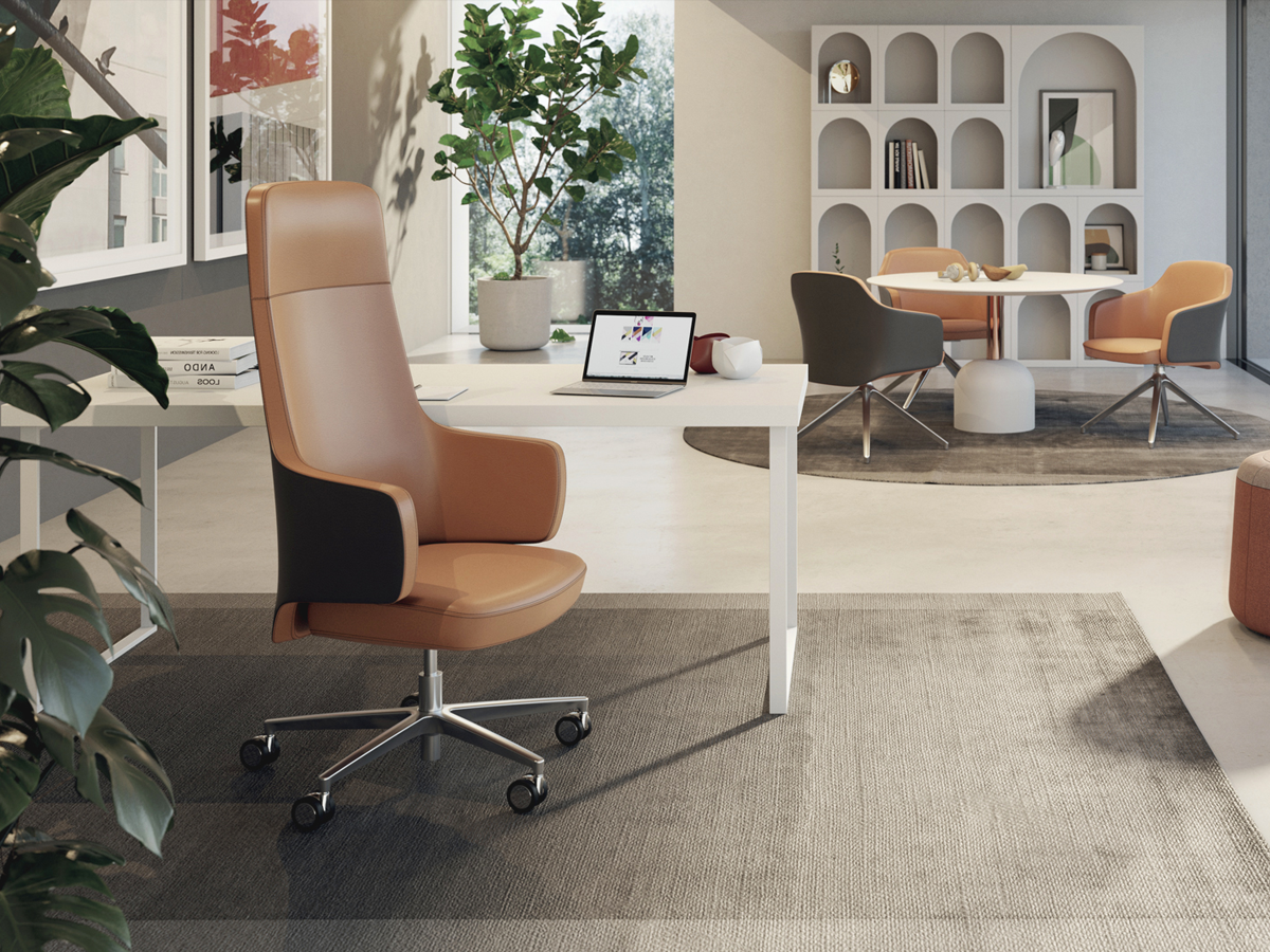 The executive version is available with high and medium backrest. Soft, comfortable and enveloping, it is the ideal choice for a modern and elegant office, Edgar features quality upholsteries, refined details and handcrafted finishes. Also available in an interesting two-tone version.