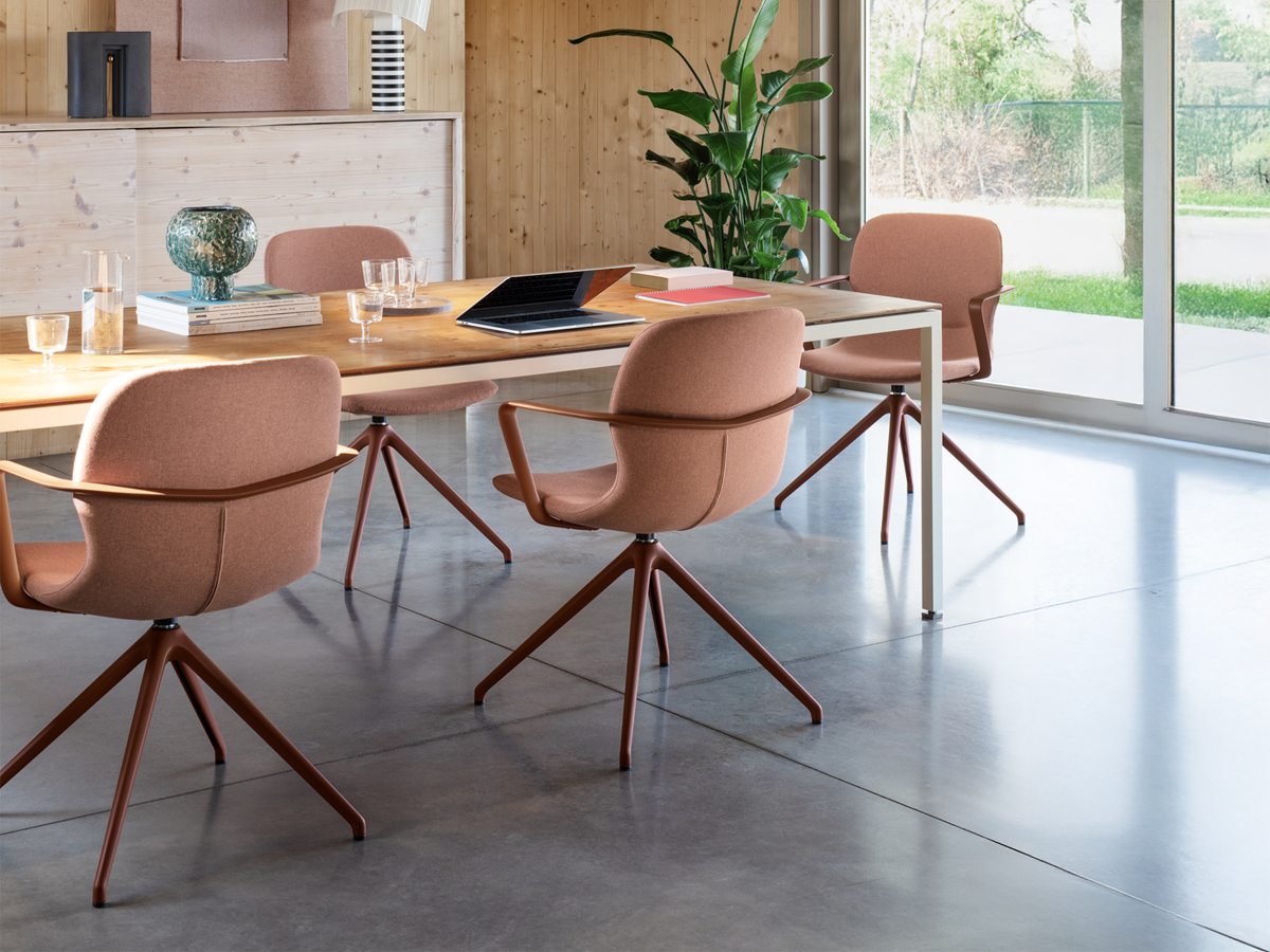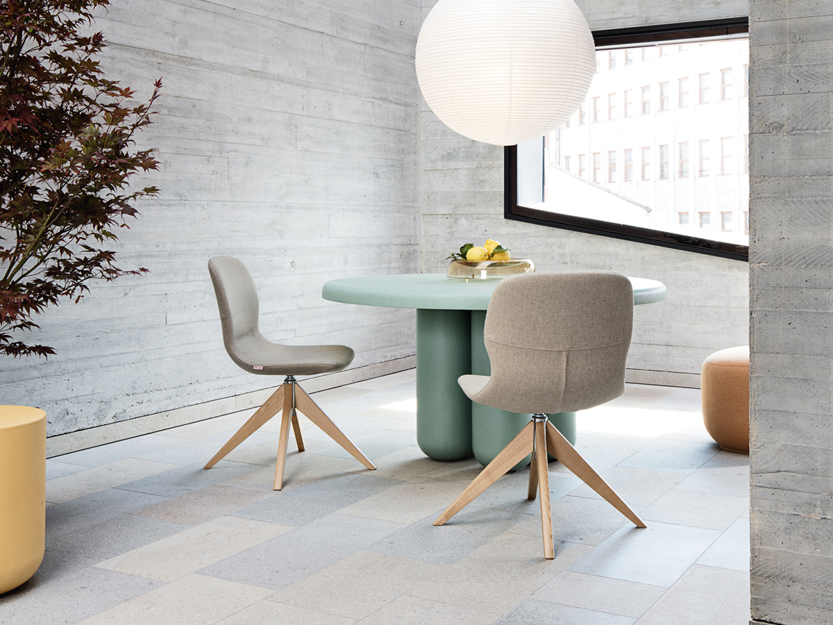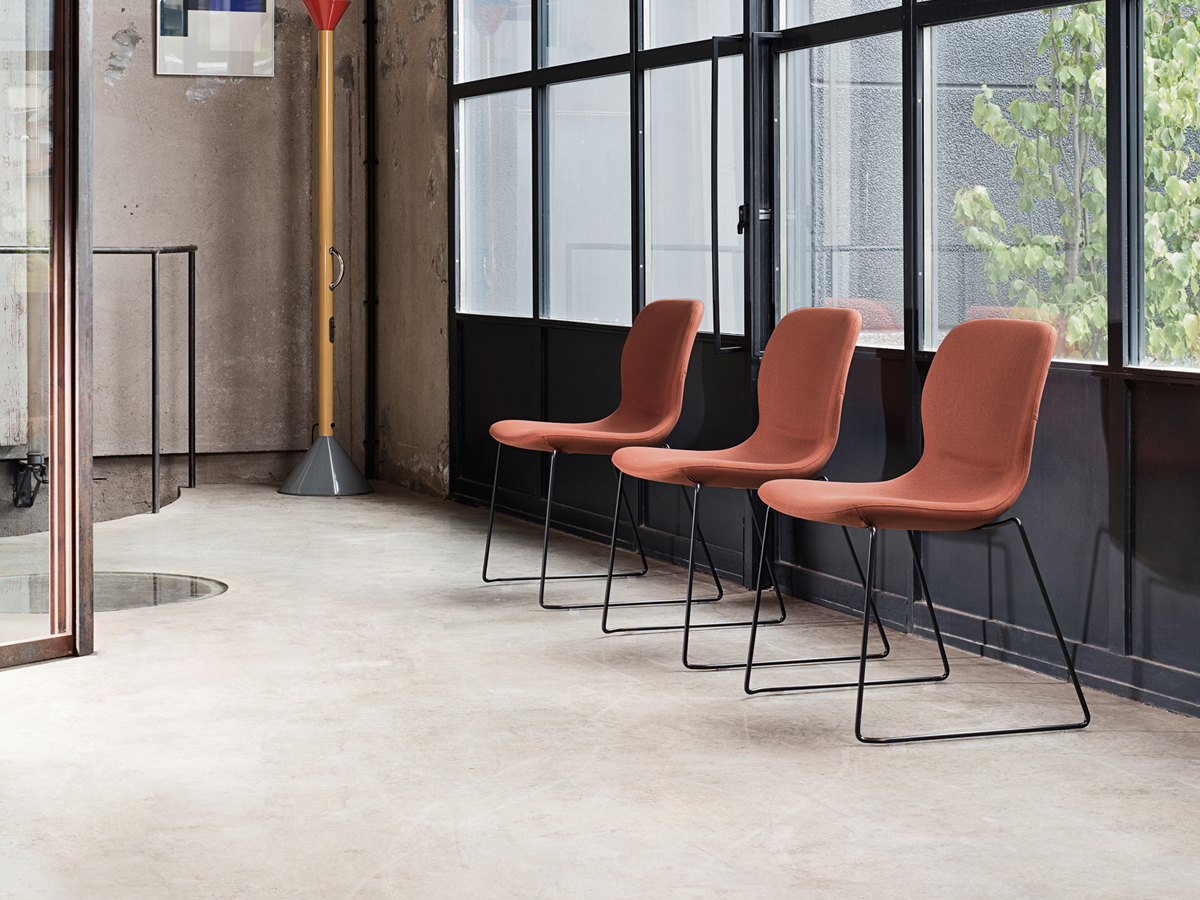 An iconic product, Mi Chair is a versatile piece designed to adapt to the fluidity of contemporary spaces. Its shapes are inspired by the human body, echoed in the profile of the single-piece upholstered shell that integrates seat and backrest for maximum comfort. The continuous line of the armrest, which wraps around the back and sides, stands out as a unique design feature.