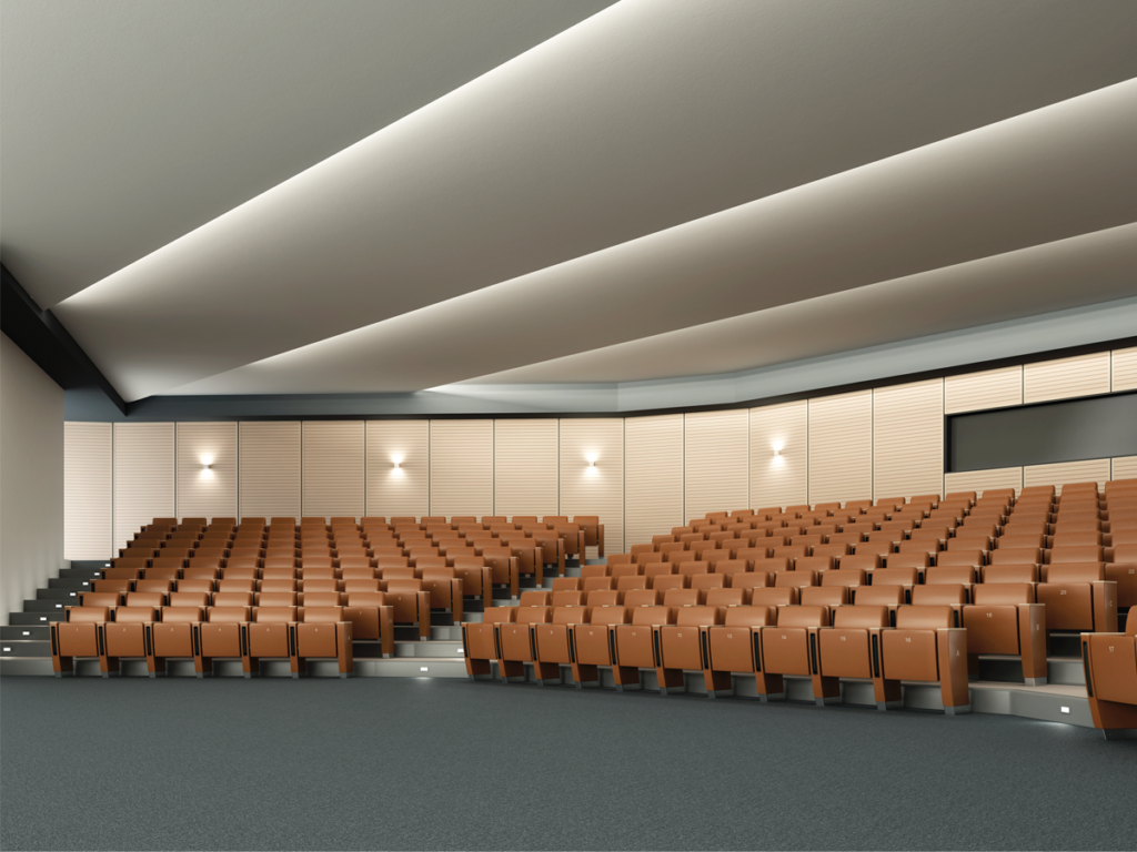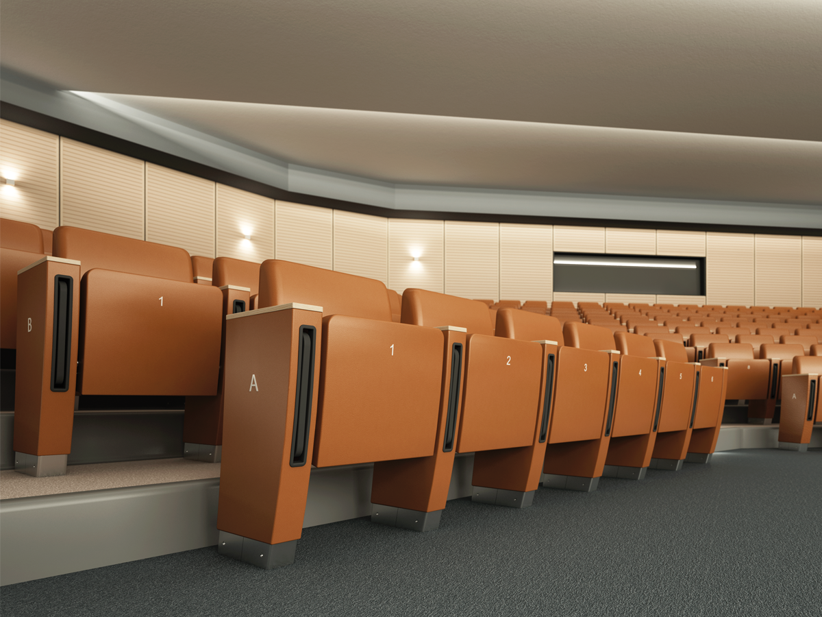 Pasha is a system of armchairs ideal to furnish theaters, auditoriums and conference halls: comfortable and elegant, this armchair is equipped with synchronized movement of backrest and seat, with ascent slowdown.