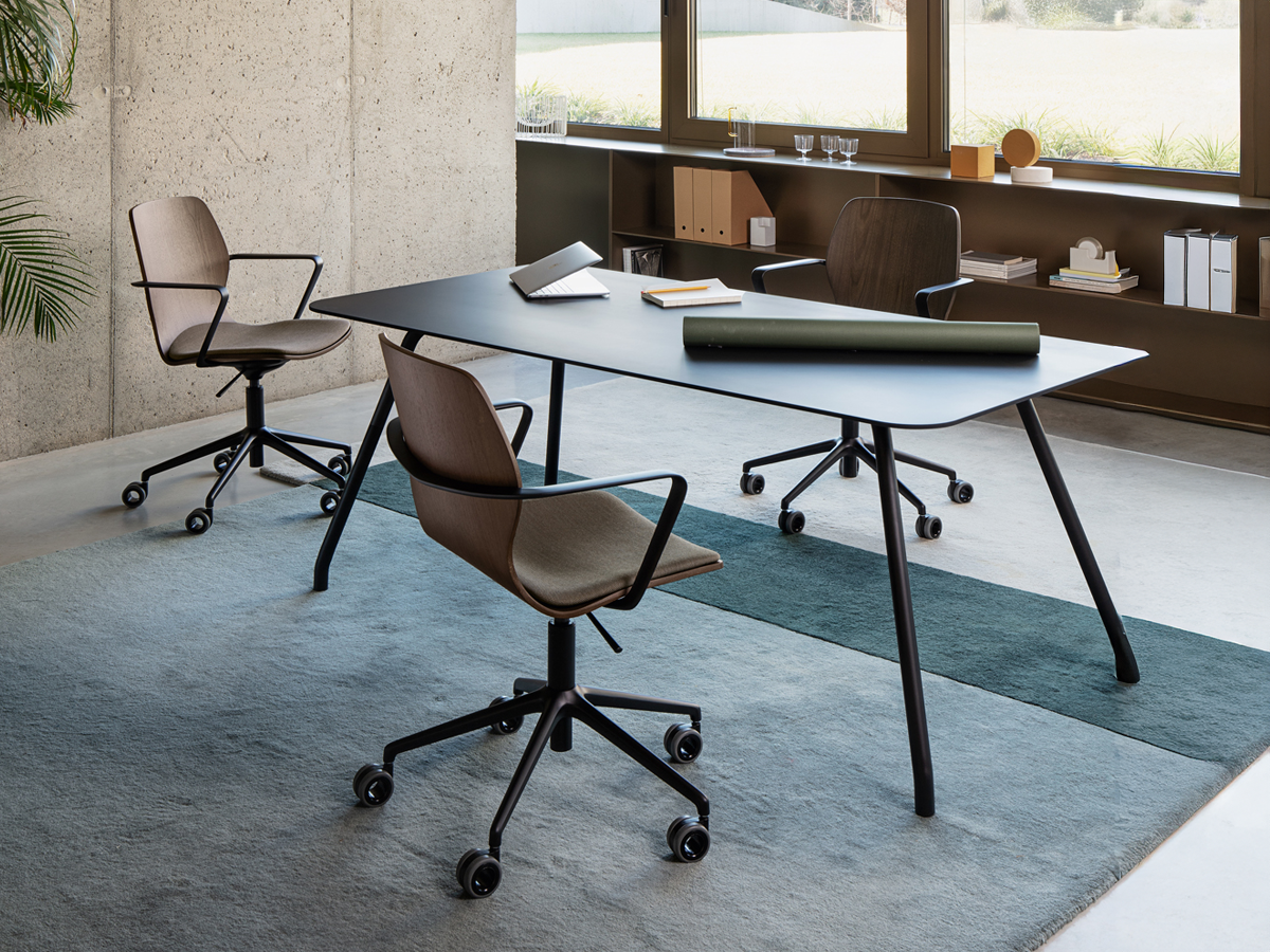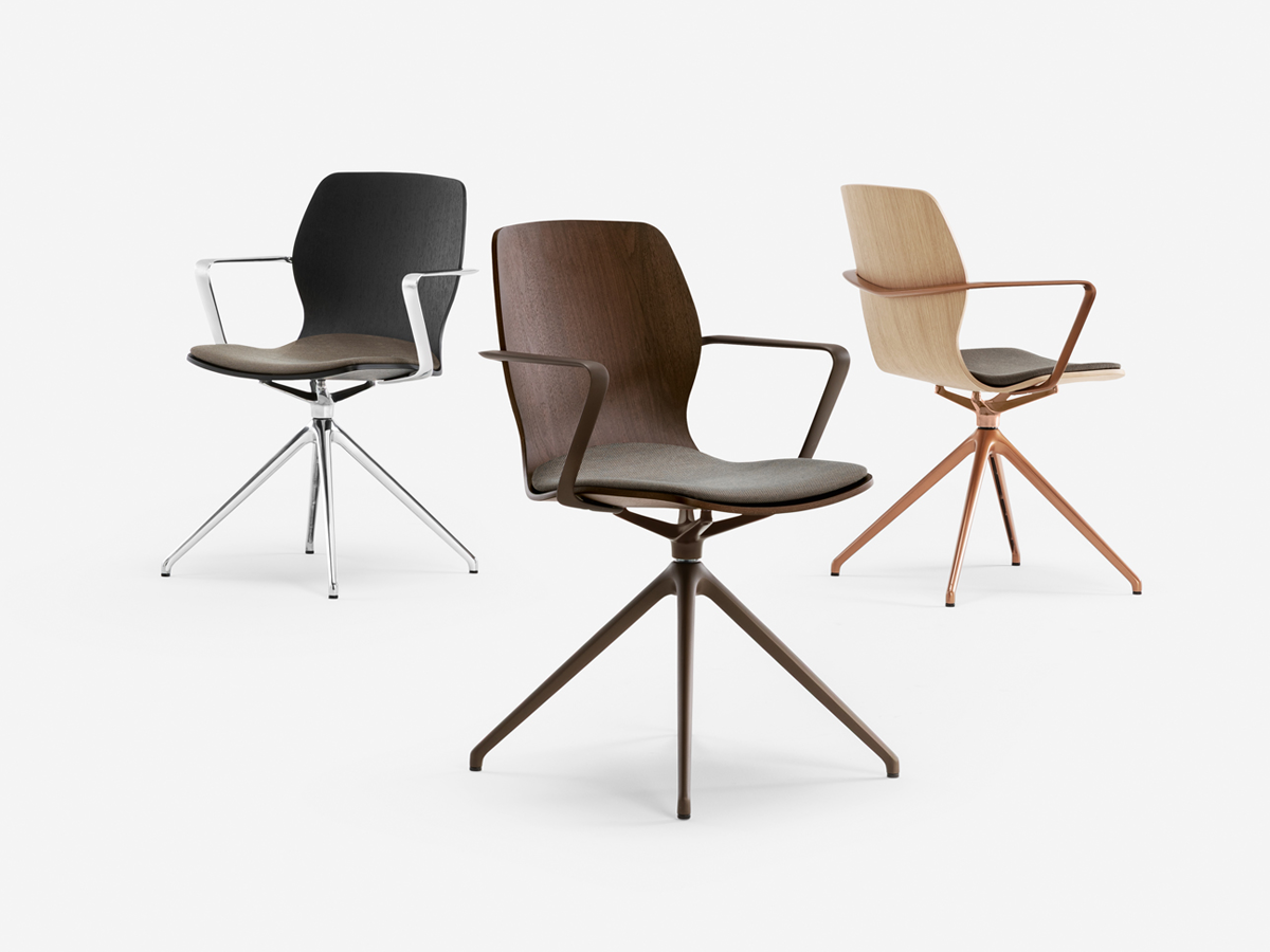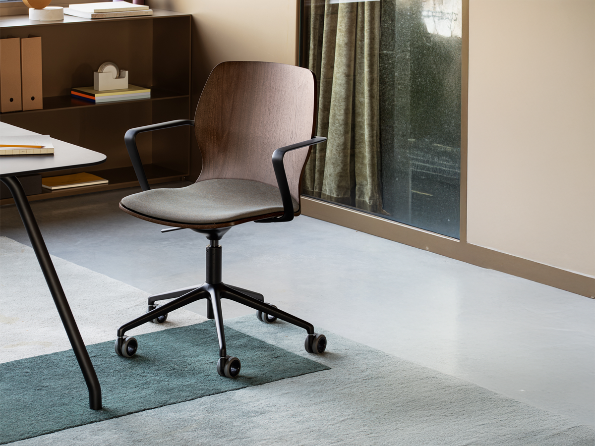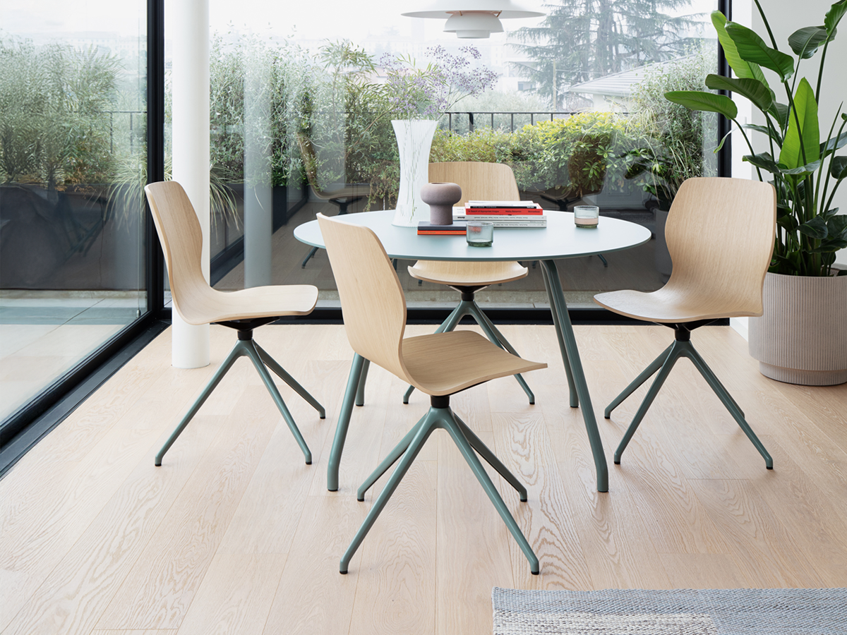 Mi Wood is the wooden-base version of the iconic Mi Chair. It maintains the ergonomic shapes and single-shell seat-back design, while introducing a warm, natural touch through its solid wood frame—perfect for refined and welcoming environments.