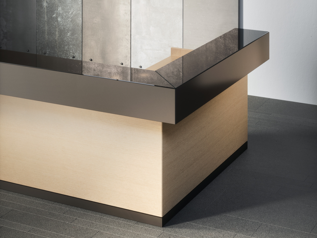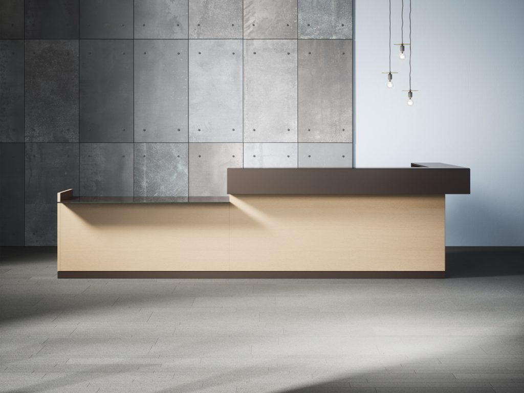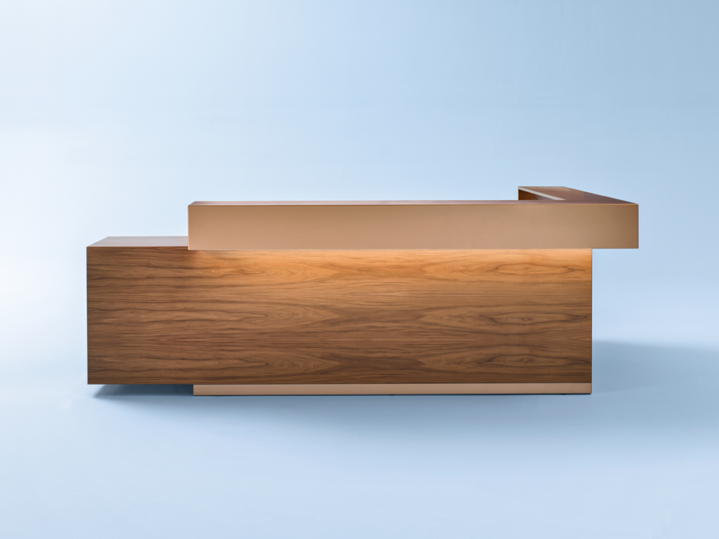 Furnishing with image and professionalism. Linear elements, rounded lines, details of high formal valence and unusual combinations of materials; just as a business card, the reception is the first point of contact with the public and the outside world.